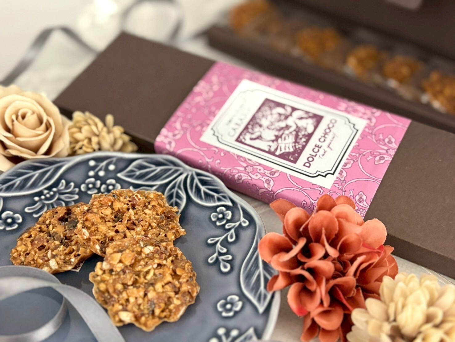 エンジェルズ・キャラメリアは、黄金色のキャラメルと香ばしいナッツで仕上げた、羽のように軽やかで、心地よいカリッとした食感のフロランタンです。